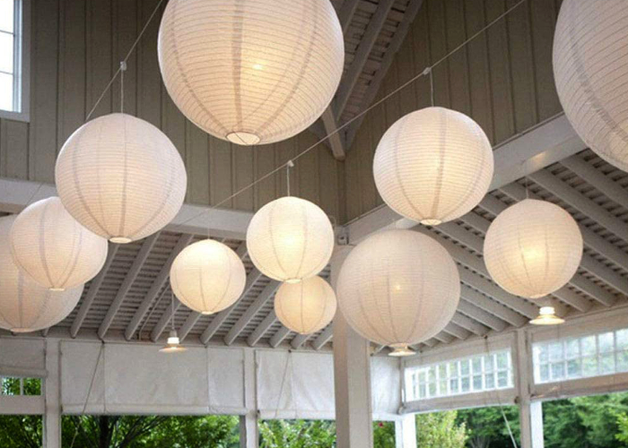 Handgemachte Papier Lampions, Ausbau mit einem Metallrahmen, LED-Ballons Beleuchtung sind auch im Lieferumfang enthalten und brauchen nicht extra zu mieten. Brenndauer der LEDs ca.4 -5 Stunden, Batteriebetrieb.