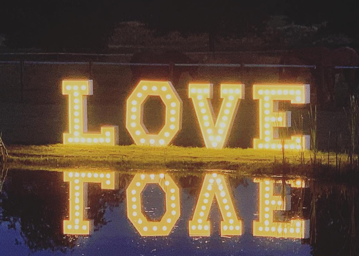 XXL-LOVE Buchstaben in Western-Optik. Ca. 1,10 m hoch und 2,50 m bis