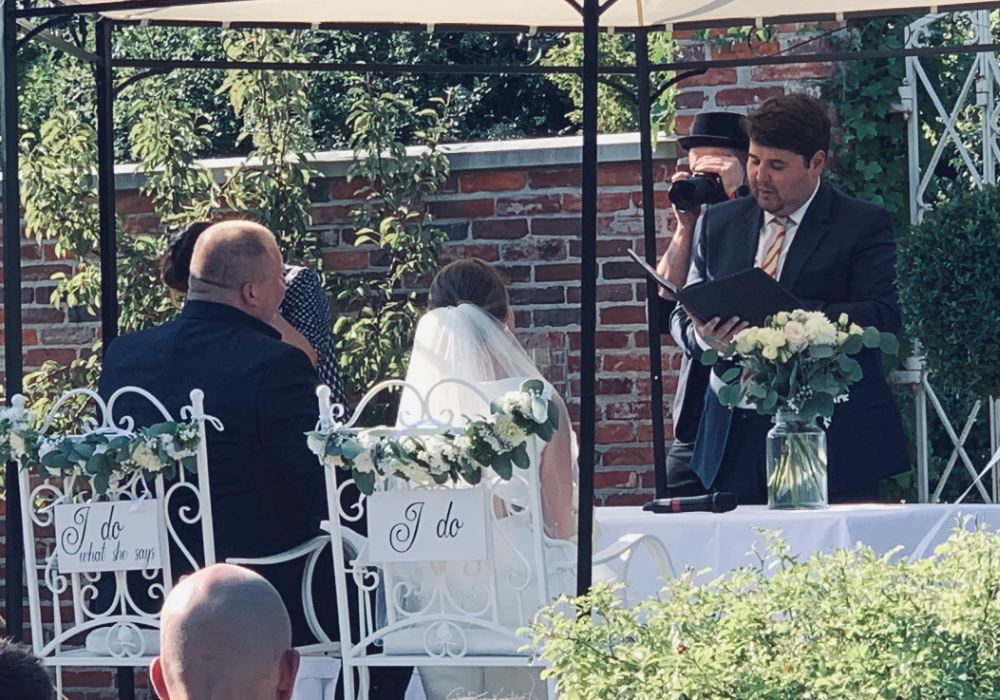 Sehr dezente Technik. Absolute Hand- und Armfreiheit des Trauredner durch unsere Headsets. So kann Euer Redner weiter die Emotionen auch gestikulieren.